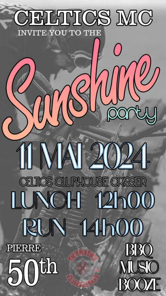 “Nous nous sommes réunis au Buffalo Grill de Crissier sous un soleil éclatant et une chaleur de près de 28 degrés. À 12h30, nous avons pris la direction du clubhouse des CELTICS MC pour participer au run Sunshine Party 2024. Le départ du run était prévu à 14h00 en direction de Forel, avec une halte bien méritée au restaurant-bar ROUTE 66. Un grand merci au moto-club Celtics pour avoir orchestré cet événement mémorable.”